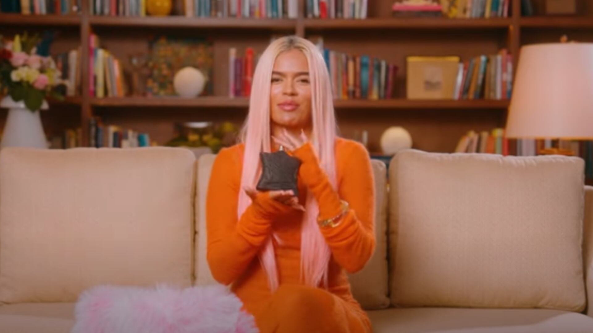 Karol G Karol G tapa con cinta aislante el perfume que no puede faltar en su bolso, pero descubrieron que se trata de la fragancia unisex Bond 9 Bleecker Street. (Youtube @vogespain)